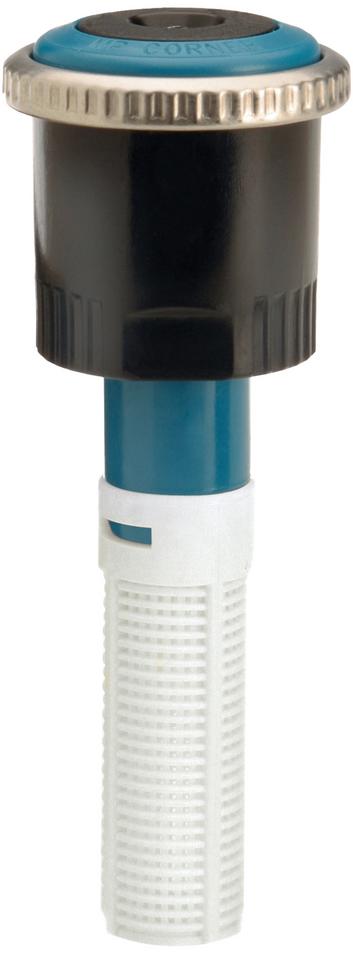Hunter MP Rotator Corner je špecializovaná tryska určená pre profesionálne závlahové systémy, kde je potrebné efektívne pokryť ťažko dostupné rohové a úzke priestory. Využíva unikátny systém viacerých lúčov s rotačnou trajektóriou, ktoré aplikujú vodu pomaly a rovnomerne. Tento princíp zaisťuje vynikajúcu distribúciu vody, minimalizuje odtok a umožňuje jej efektívne vsiaknutie do koreňovej zóny. Nízka zrážková výška (približne 10 mm/h) je ideálna pre svahovité terény a pôdy s nízkou nasiakavosťou. Tryska je vybavená dvojitým "double-pop" mechanizmom, ktorý chráni vnútorné časti pred nečistotami, a odnímateľným filtrom pre jednoduchú údržbu. Pre dosiahnutie optimálneho výkonu a zaručenie pracovného tlaku 2,8 bar sa odporúča inštalácia trysky na telesá postrekovačov s integrovanou reguláciou tlaku, napríklad Hunter Pro-Spray™ PRS40.