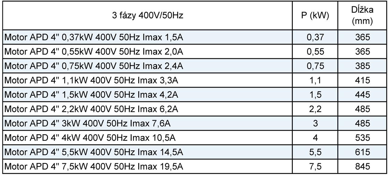 Profesionálny trojfázový ponorný motor APD s výkonom 1,1 kW je špičkový pohonný agregát navrhnutý pre 4" hydraulické časti v náročných B2B prevádzkach s požiadavkou na extrémnu odolnosť voči tlaku až do hĺbky 350 metrov. Celonerezové vyhotovenie z ocele AISI 304 v kombinácii s vysokou energetickou účinnosťou trojfázového napájania zaručuje maximálnu stabilitu a dlhú životnosť v priemyselných a poľnohospodárskych systémoch distribúcie úžitkovej vody.