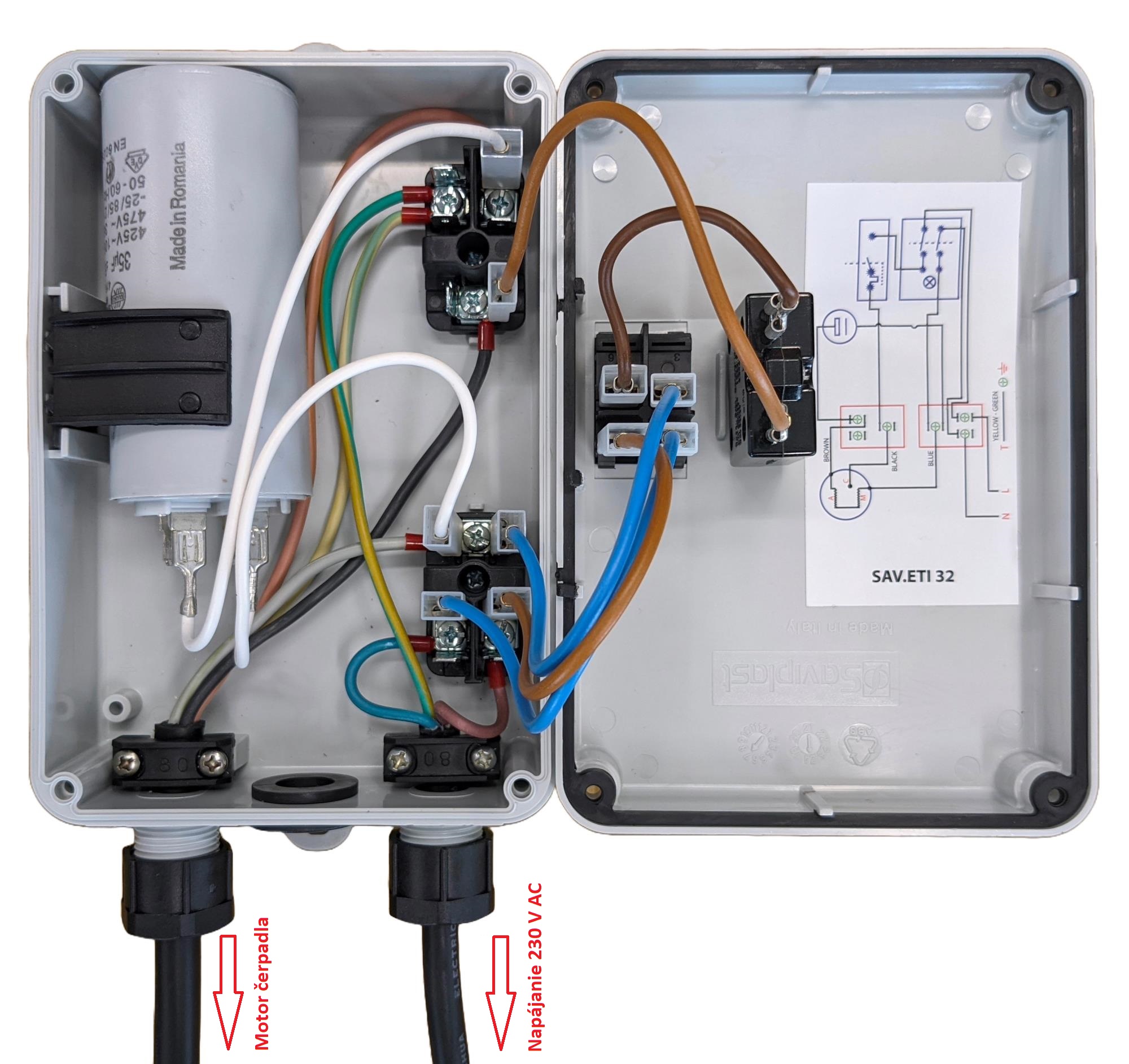 Rozbehová skrinka 1,1 kW (40 µF / 10 A): Ovládanie a ochrana pre ponorné čerpadlá
