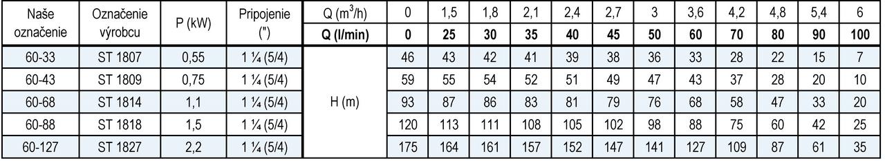 • Optimálny pracovný bod: 60 l/min pri 43 m.