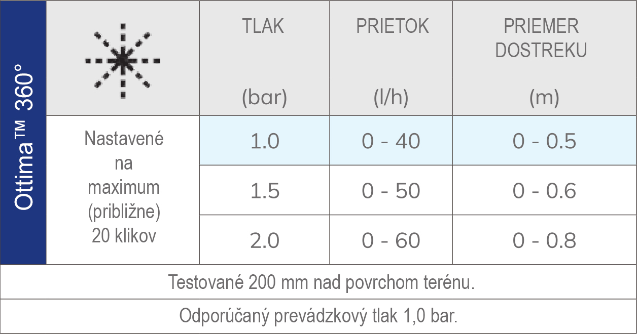 V porovnaní s fixnými kvapkovačmi poskytuje Ottima ADJ 360° oveľa väčšiu kontrolu nad zavlažovaním. Okrem toho disponuje funkciou rýchleho zapnutia a vypnutia (Quick ON-OFF), čo zjednodušuje manuálne riadenie zavlažovania. Verzia "s hrotom" (spike) umožňuje jednoduché a stabilné umiestnenie priamo do pôdy vedľa rastliny.