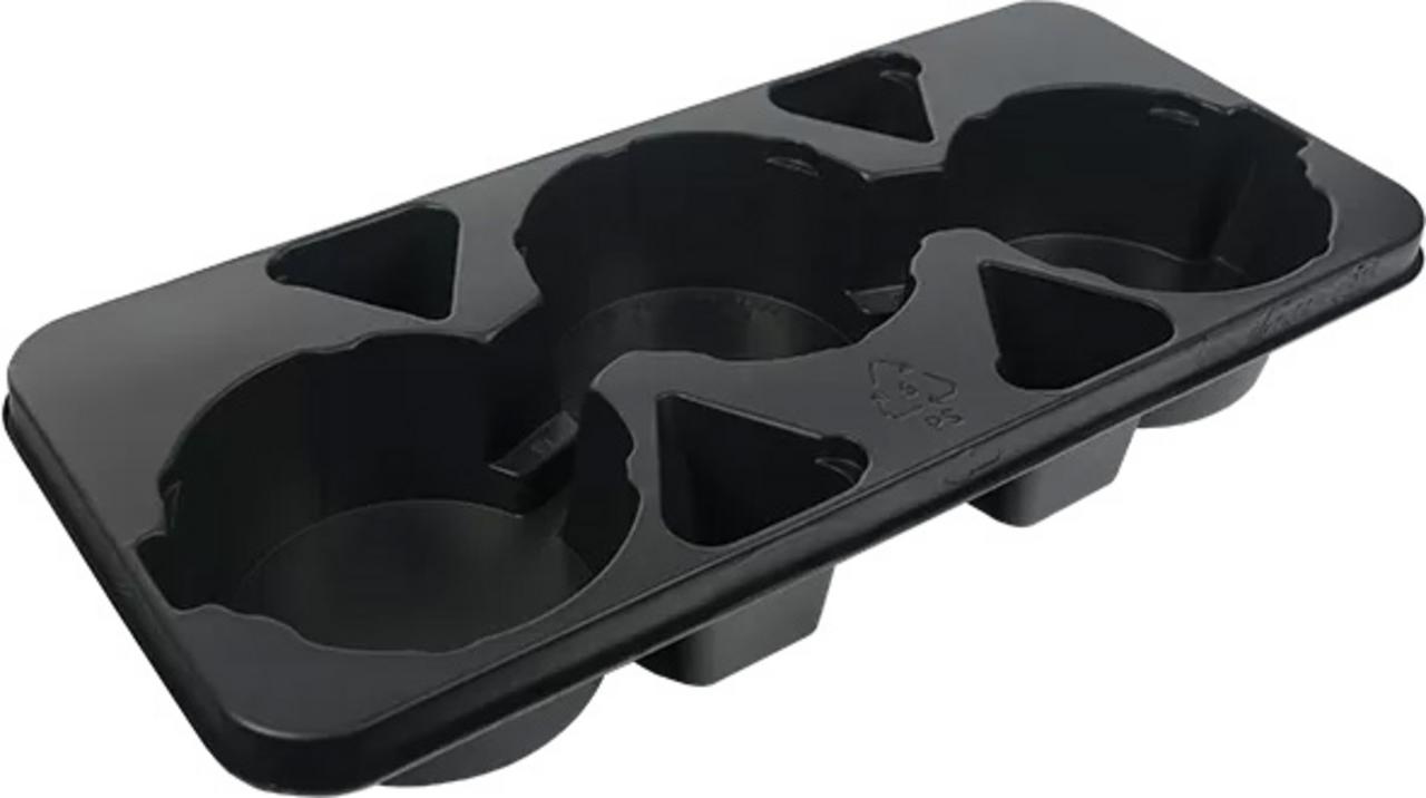 Čierne transportné pláto Modiform 4483 Normpack 483 pre 3 ks okrúhlych kvetináčov s priemerom 19 cm.