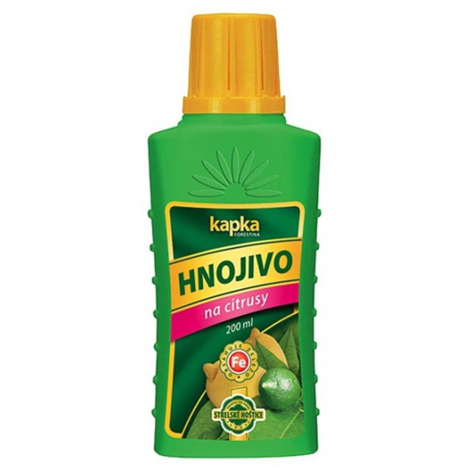 Kapka hnojivo na citrusy 0,2 l je špeciálny kvapalný koncentrát (NPK 5-6-6) s prídavkom železa, určený pre všetky druhy citrusov. Vyvážené zloženie podporuje tvorbu kvetov a plodov, zatiaľ čo obsah železa (0,5 %) aktívne zabraňuje chloróze (žltnutiu listov). Je vhodné na aplikáciu zálievkou aj postrekom pre rastliny pestované v črepníkoch aj skleníkoch.